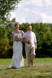 I have known Tammy for a long time, when she first approached me about being her wedding photographer, I said "yes" before I even knew where it would be! I had known about the venue, but it was the first time shooting there. I was blown away by the Wild Rose Ranch, it is such an amazing place to have a wedding! Tammy had all these little details taken care of. From the vintage tea cups holding cupcakes, to her handmade bouquet made from vintage broaches and jewelry. That girl seriously has great taste and she worked her butt off! This ceremony took place on in a gazebo up on a hill overlooking beautiful fields and forests. Tammy had her son walk her down the isle, and Jesse's daughters were flower girls, handing out flowers to friends and family of the couple. Jesse and Tammy both wrote their own vows, there was not a dry eye in the whole place. Dinner and dancing were both held in the stable, which was rustic, vintage and chic.